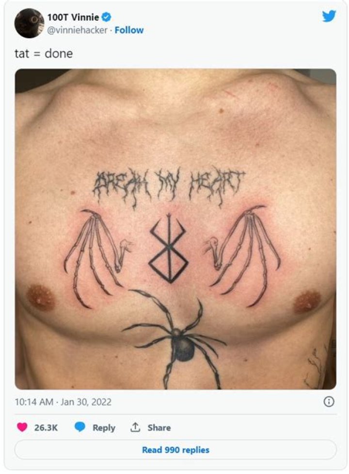 Vinnie Hacker’s tattoos are on different parts of his body, and he keeps adding more as the days roll by. Each of his tattoos has significance in his life...